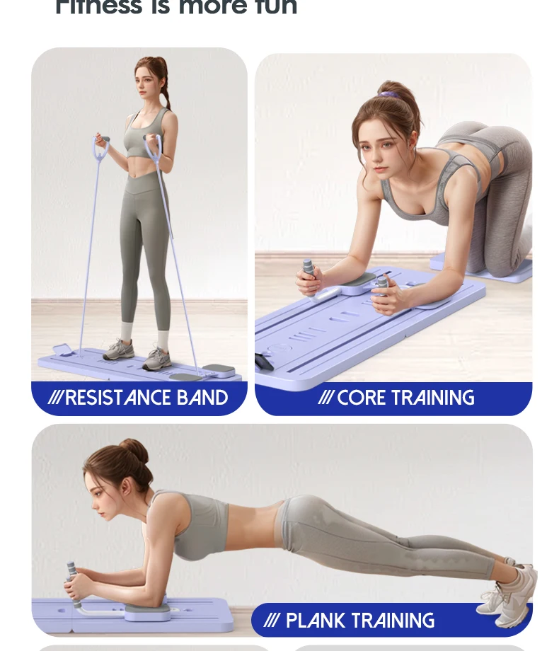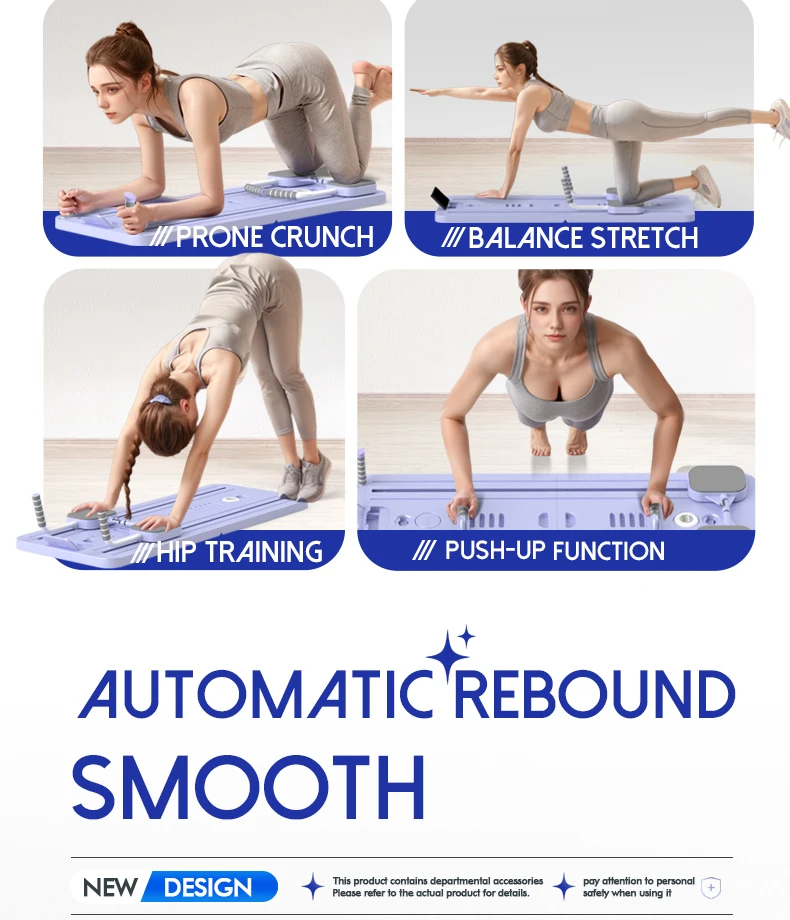 Women's Multifunctional Portable Pilates Board Set Foldable Reformer with for Ab Roller Wheels for Home Use and Beginners